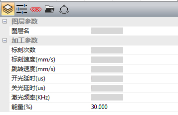 正常開機后,將能量調至30%以下,其余參數不變(操作界面如下圖所示),空打出光預熱約10分鐘,再進行生產加工。